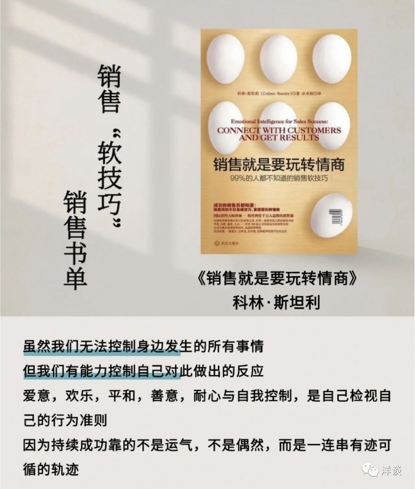 前段時(shí)間幾個(gè)同事來(lái)找我傾訴,說(shuō)客戶(hù)的溝通該做的我都做了,最后怎么客戶(hù)不理我了?我們一起分析原因,商量對(duì)策。后來(lái)我把大家遇到的問(wèn)題進(jìn)行了歸納總結(jié),準(zhǔn)備分析探討一個(gè)主題:為什么客戶(hù)不理我。在充實(shí)材料的時(shí)候,我發(fā)現(xiàn)了一本好書(shū),它從問(wèn)題的本質(zhì)、理論的依據(jù)以及實(shí)操的維度解答了大家的困惑。今天和大家分享這本書(shū)的精髓。書(shū)名叫作《銷(xiāo)售就是要玩轉(zhuǎn)情商》,它的副標(biāo)題是“99%的人都不知道的銷(xiāo)售軟技巧”,在博雅、思文書(shū)屋都有賣(mài)。