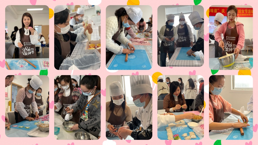 活動(dòng)中,女職工們?cè)趯I(yè)面點(diǎn)老師的指導(dǎo)下包柳葉餃、元寶餃、月牙餃。西式烘焙組按照老師的配方,從制作蛋糕胚到裱花,成功做出了口感綿密的戚風(fēng)蛋糕。每一個(gè)環(huán)節(jié)大家都非常專心和細(xì)心,互相協(xié)作,體驗(yàn)著自己動(dòng)手制作美食的快樂(lè)。