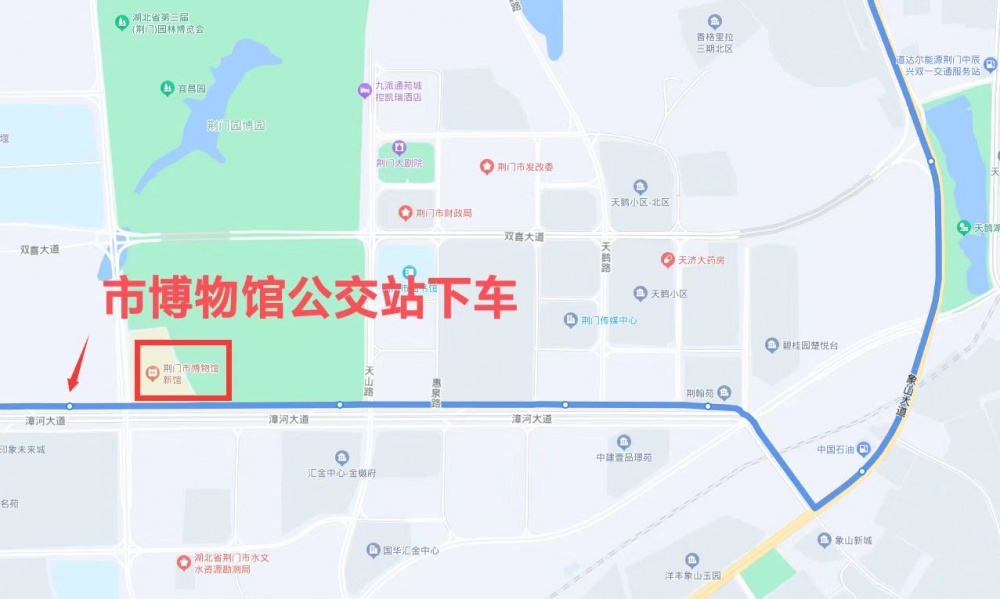 乘坐21路公交車(龍泉中學(xué)—漳河旅游碼頭)到漳河大道市博物館公交站點下車;21路線運營時間5:50-18:20,班次間隔20-25分鐘。