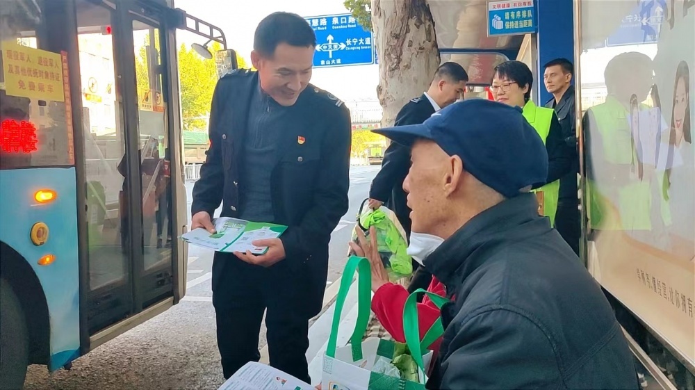 “大爺,注意安全,我扶您上車”“奶奶,我?guī)湍惆研欣钐嵘先ァ薄澳堊€(wěn)扶好”,簡簡單單一聲問候、一個動作,向老人們傳遞濃濃關(guān)愛和溫情,志愿者的行動也獲得市民點贊。