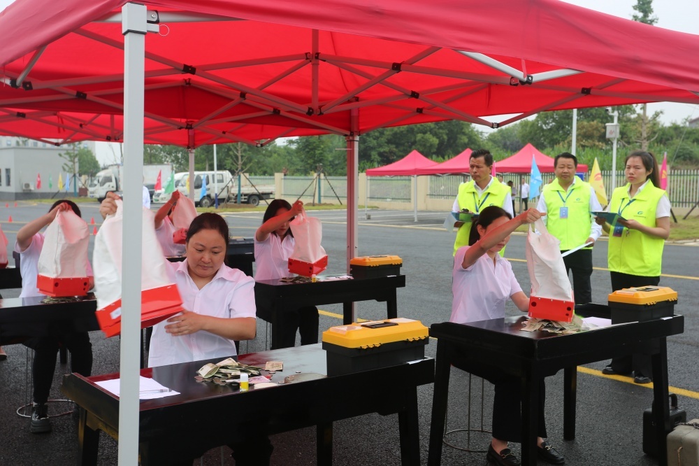 點(diǎn)鈔技能比武現(xiàn)場(chǎng),6名參賽者手指翻飛,雖然現(xiàn)場(chǎng)觀眾眾多,但絲毫未影響其點(diǎn)鈔速度,她們憑借專注的精神和嫻熟的技能,充分展現(xiàn)著“老司機(jī)”的實(shí)力。最終,市公交集團(tuán)營(yíng)業(yè)中心全云以4分02秒的速度和100%的正確率斬獲冠軍。