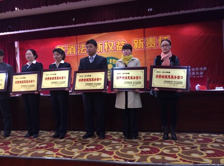 3月14日,荊門市消費(fèi)者權(quán)益保護(hù)工作會(huì)議在荊門賓館四樓會(huì)議室召開,會(huì)議表彰了獲得荊門市2012-013年度"十佳消費(fèi)者滿意服務(wù)窗口"以及荊門市2012-2013年度"消費(fèi)者滿意服務(wù)窗口"稱號(hào)的30家單位,集團(tuán)公司IC卡發(fā)行管理中心在這次評(píng)選中獲"消費(fèi)者滿意服務(wù)窗口"稱號(hào)。