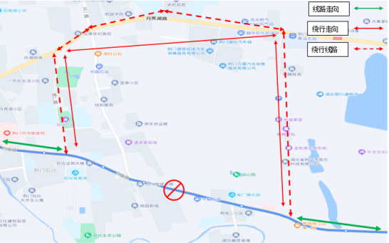 調(diào)整施工路段走向:往返繞行煉廠路、月亮湖路、江山路
