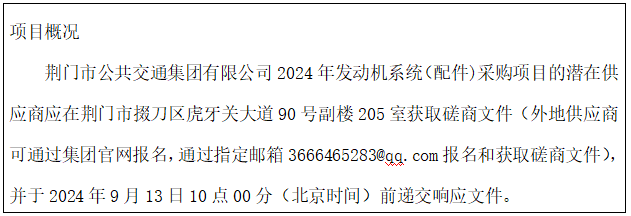 項目名稱:荊門市公共交通集團有限公司2024年發(fā)動機系統(tǒng)(配件)采購項目