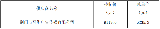 荊門(mén)市公共交通集團(tuán)有限公司2024年廣告開(kāi)展設(shè)計(jì)制作類(lèi)年度供應(yīng)商采購(gòu)項(xiàng)目進(jìn)行了詢價(jià),經(jīng)詢價(jià)小組評(píng)審?fù)扑],現(xiàn)將本次詢價(jià)的成交結(jié)果公布如下: